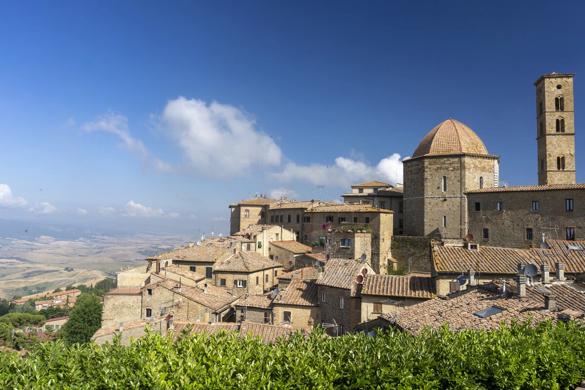 Essa cidadezinha é Volterra, que não surpreende apenas por ser um dos destinos da saga, mas por sua rica história: suas origens remontam aos povos etruscos, que batizaram a cidade de Velathri. Em seguida, os romanos mudaram o nome para Volaterrae. Os muros etruscos ainda estão bem preservados.