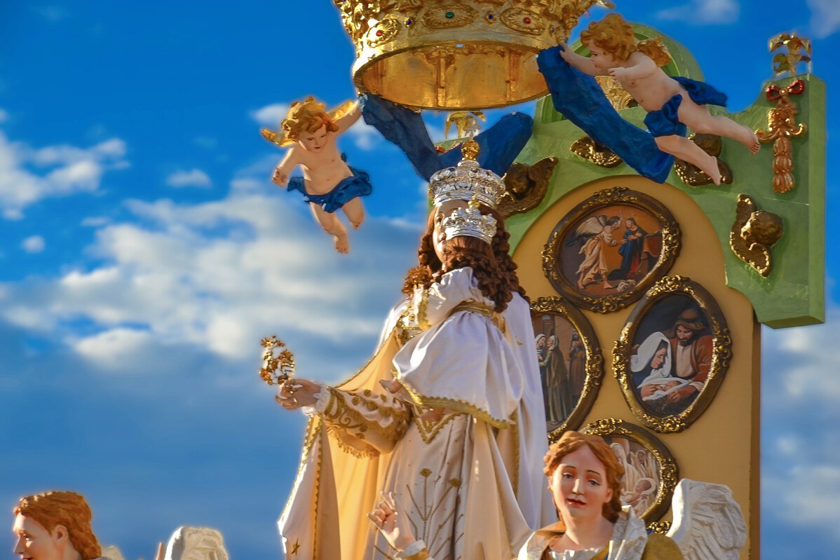 A Festa della Madonna Bruna é uma das celebrações mais tradicionais e emocionantes da cidade de Matera, na região da Basilicata, com raízes que remontam ao século XIV. A festa homenageia a padroeira local, Nossa Senhora do Carmo, conhecida como La Bruna na Itália, associada à proteção da cidade e à gratidão por milagres atribuídos à sua intercessão. Seu ponto alto é a procissão do carro triunfal: uma grande estrutura artesanal de papel-mache elaborada todos os anos por artistas locais e que percorre as ruas acompanhada por fiéis, bandas e uma atmosfera profundamente devocional. A simbologia religiosa se mistura à identidade histórica de Matera, especialmente marcada por suas tradições camponesas.
